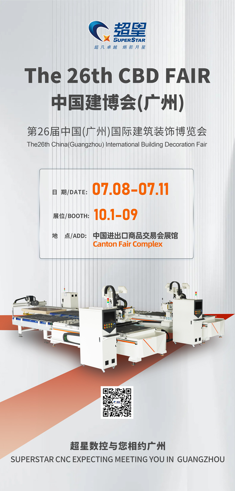 感謝大家一直以來對我們超星數(shù)控集團(tuán)的支持和信任。為了更好地服務(wù)于大家,展示我們的產(chǎn)品和技術(shù),我們公司將于7月8日~11日參加一場名為“中國國際建筑裝飾博覽會”的活動。